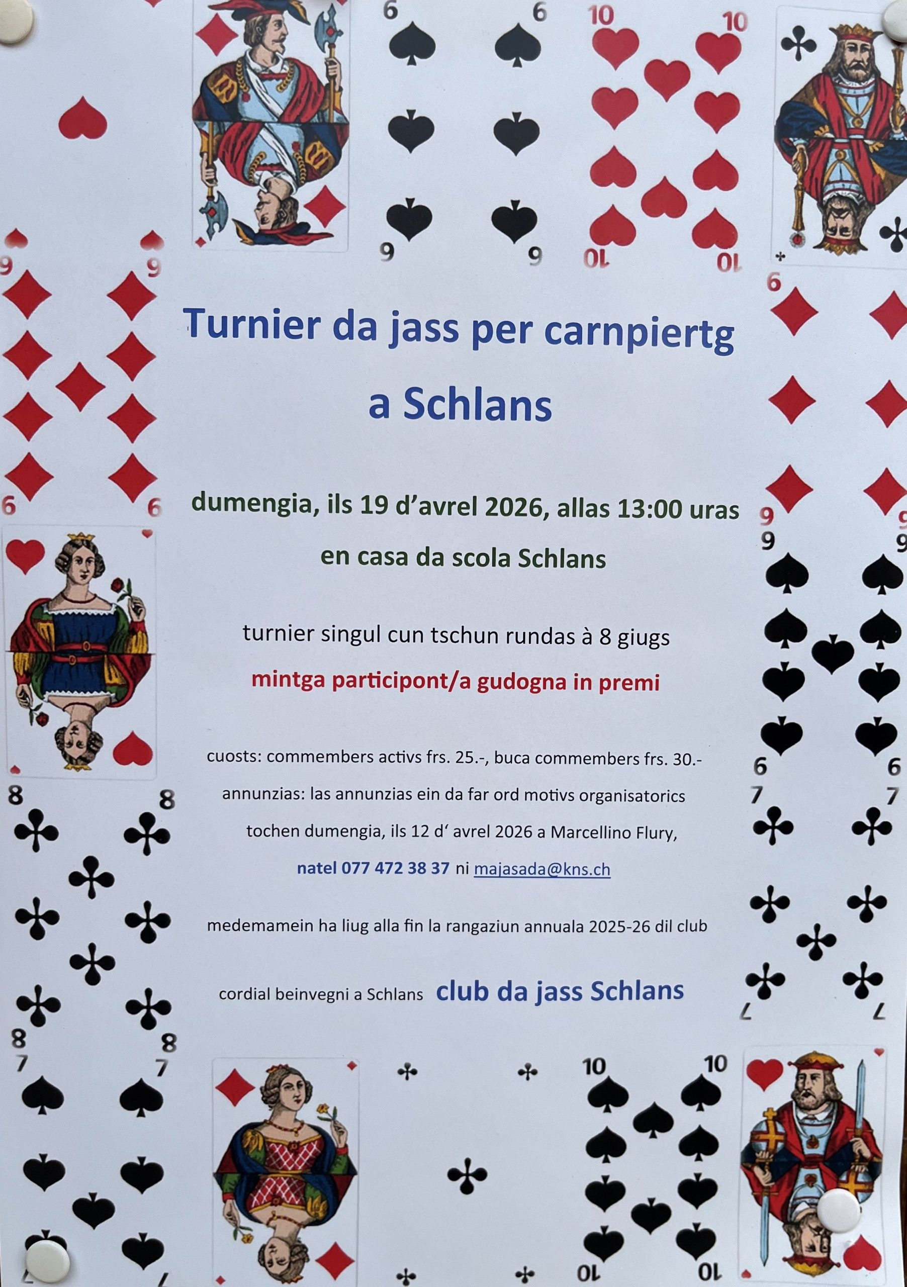 Ensemen cun Lukas Mosimann ha la Pro Schlans sviluppau ina seria da cartas da Schlans e contuorn. Las cartas ein venalas en sets da 10 per 25.- il set, quei en l'ustria Chispacius e tier la Pro Schlans (cun il formular dretg).